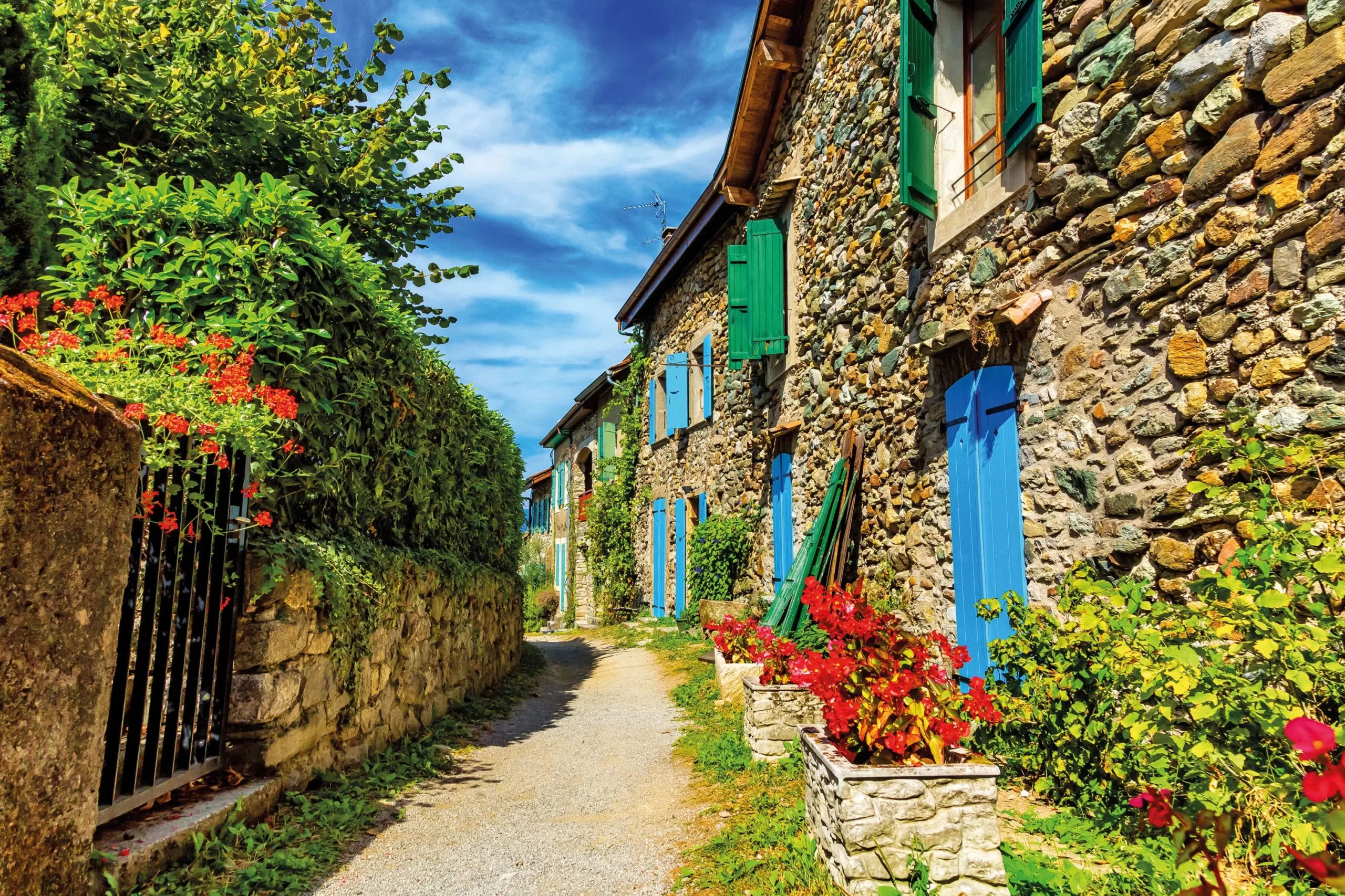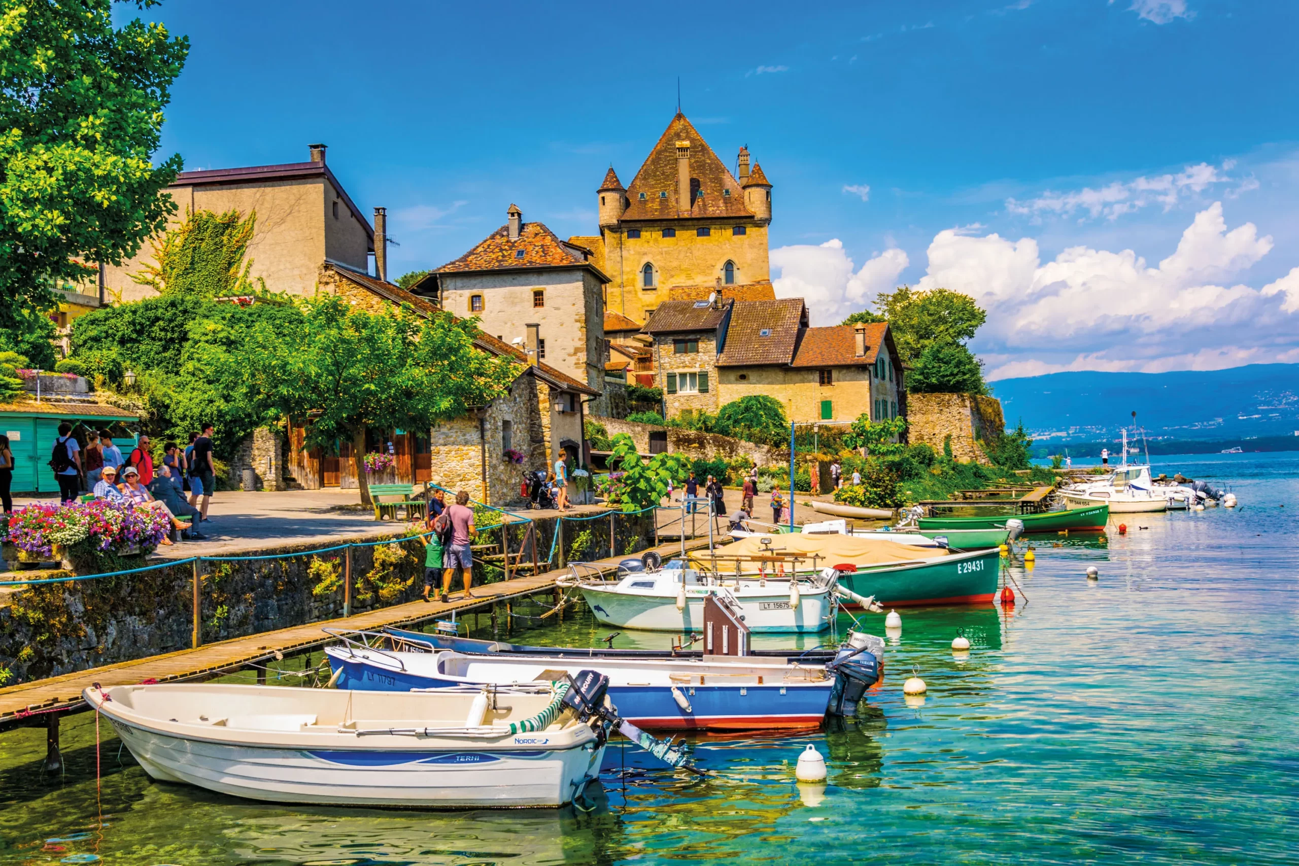 Départ en direction de Nantua et arrivée à Sciez. Découverte d’un domaine viticole en production biologique qui possède la plus vieille cave de Savoie datant du début du 11è siècle. Découverte du cru Marignan avec entre autres, le Chasselas ou “la Chèvre”, nectar chablaisien qui ne laisse pas indifférent. Dégustation de vins et de spécialités locales. Déjeuner au bord du Léman. L’après-midi, continuation pour Yvoire : accueil commentée du jardin des cinq sens, puis  promenade libre à travers ce labyrinthe végétal inspiré de l’art des jardins du Moyen-âge qui réunit plus de 1300 variétés de plantes . Grâce à un plan d’orientation et quelques explications, contemplez des arbres fruitiers, des roses anciennes, un cloître végétal de plantes médicinales et aromatiques, des fontaines… un univers de couleurs et de parfums évoluant au fil des saisons. Puis, temps libre dans le village médiéval d’Yvoire. Promenade découverte dans ce bourg médiéval fortifié idéalement situé au bord du Léman avec des vestiges essentiels des fortifications du 14 è siècle. Modeste village de pêcheurs au début du 20è siècle, Yvoire est aujourd’hui classé parmi les plus beaux villages de France grâce à son fleurissement. Installation à l’hôtel, situé dans les environs. Dîner, nuit.