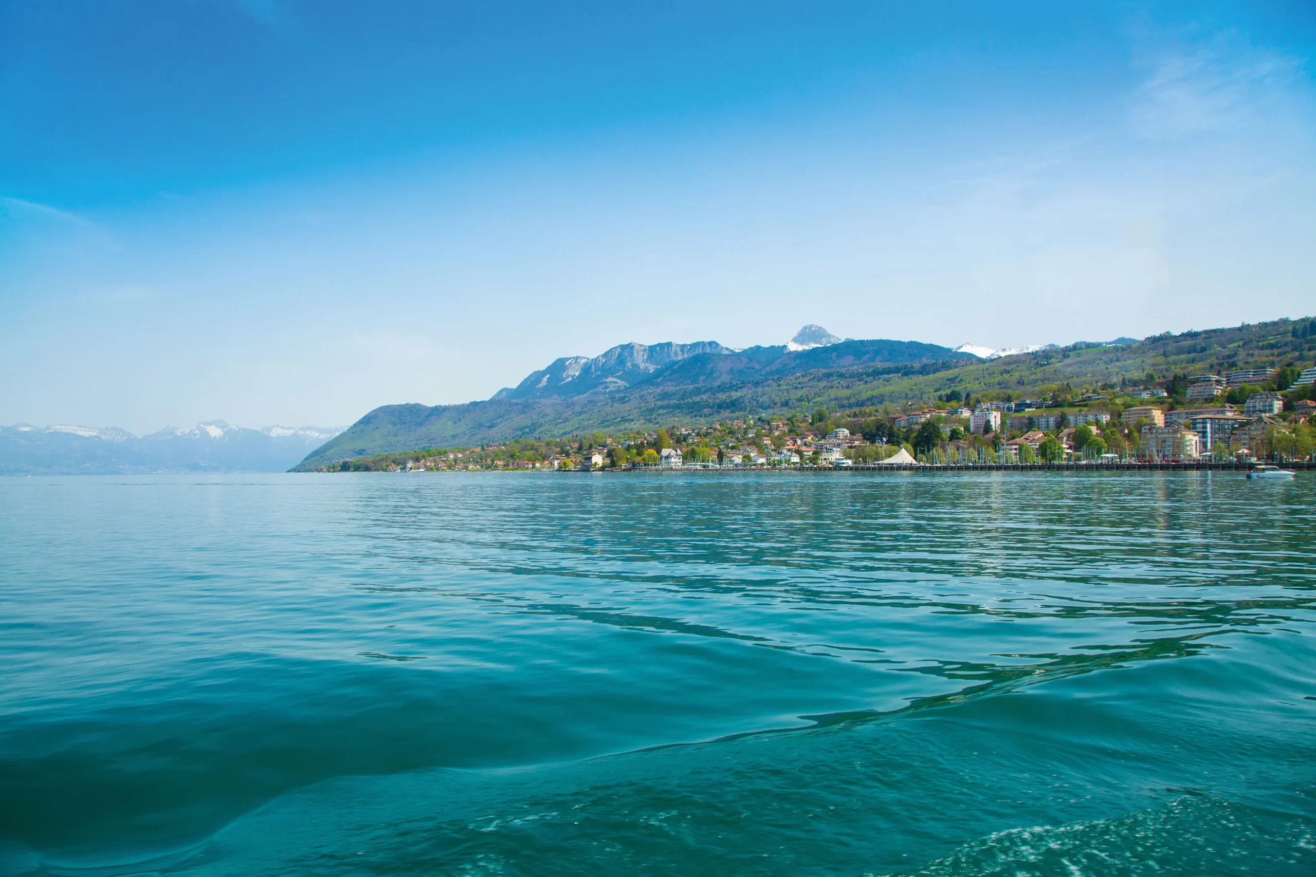 Petit déjeuner. Croisière en bateau solaire sur le lac Léman . Depuis le large, appréciez la vue imprenable sur Evian, station thermale. Découverte des jardins de l’eau du Pré Curieux. Situé en bord de lac, le Pré Curieux comprend une charmante maison de style colonial au pied de laquelle s’étend un parc boisé de 3.5 ha. Ce site constitue un lieu unique de découverte des zones humides et présente à travers une exposition et un itinéraire dans le parc, les différents écosystèmes liés à l’eau. Reprise du bateau pour un retour au port d’Evian. Déjeuner face au lac Léman. L’après-midi, visite guidée pédestre d’Evian. Découverte  du centre historique  avec ses édifices du Moyen-Age à la Belle Epoque comme la “villa Lumière”, ancienne résidence d’été de la famille Lumière devenue l’Hotel de ville puis  le théâtre de style néo-classique, le Casino, l’Eglise Notre Dame de l’Assomption ou encore le palais Lumière, anciens thermes du 20ème s. Retour et arrivée en soirée.