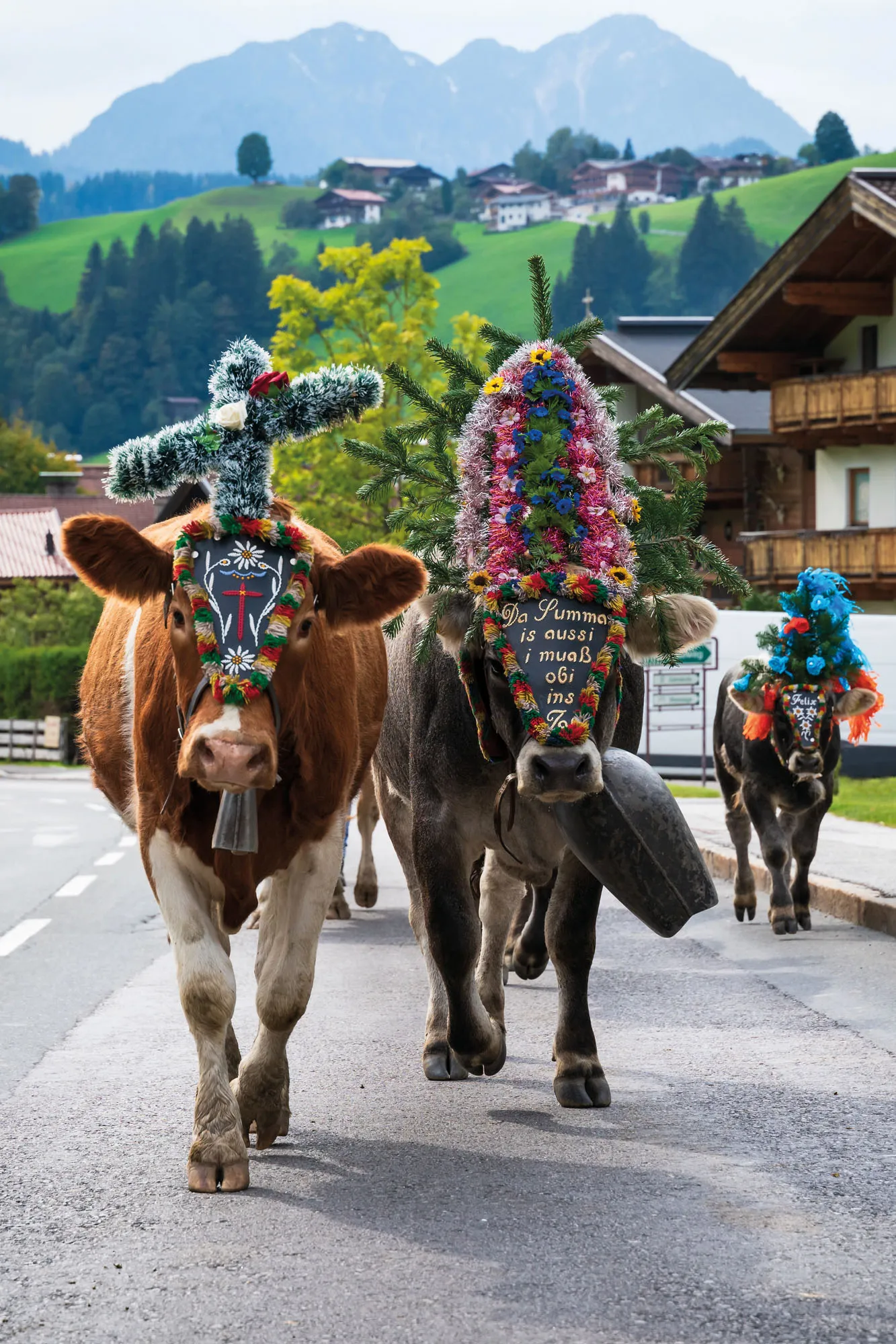 Petit déjeuner. Le matin, découverte de cette partie de la région tyrolienne en bus. Circuit panoramique autour du massif du Kaiser, où vous découvrirez des villages typiques tyroliens, tels que Ellmau, St. Johann, Oberndorf et Kitzbühel. Arrêt dans une ferme tyrolienne, et dégustation de produits régionaux. En fin de matinée, route vers Kirchberg. Déjeuner libre à la fête des fleurs. Vous y découvrirez la magnifique fête des fleurs et son défilé, avec plus de 500 000 dahlias, œillets, gerberas, tournesols, etc. Plus de 30 voitures fleuries et anciennes richement décorées, conçues autour des imaginaires de contes de fées, de créatures mythiques, d’événements actuels, traditionnels et de l’actualité, parcourent le village. Cette merveilleuse journée de fleurs se termine par une somptueuse fête estivale. Dîner, nuit.