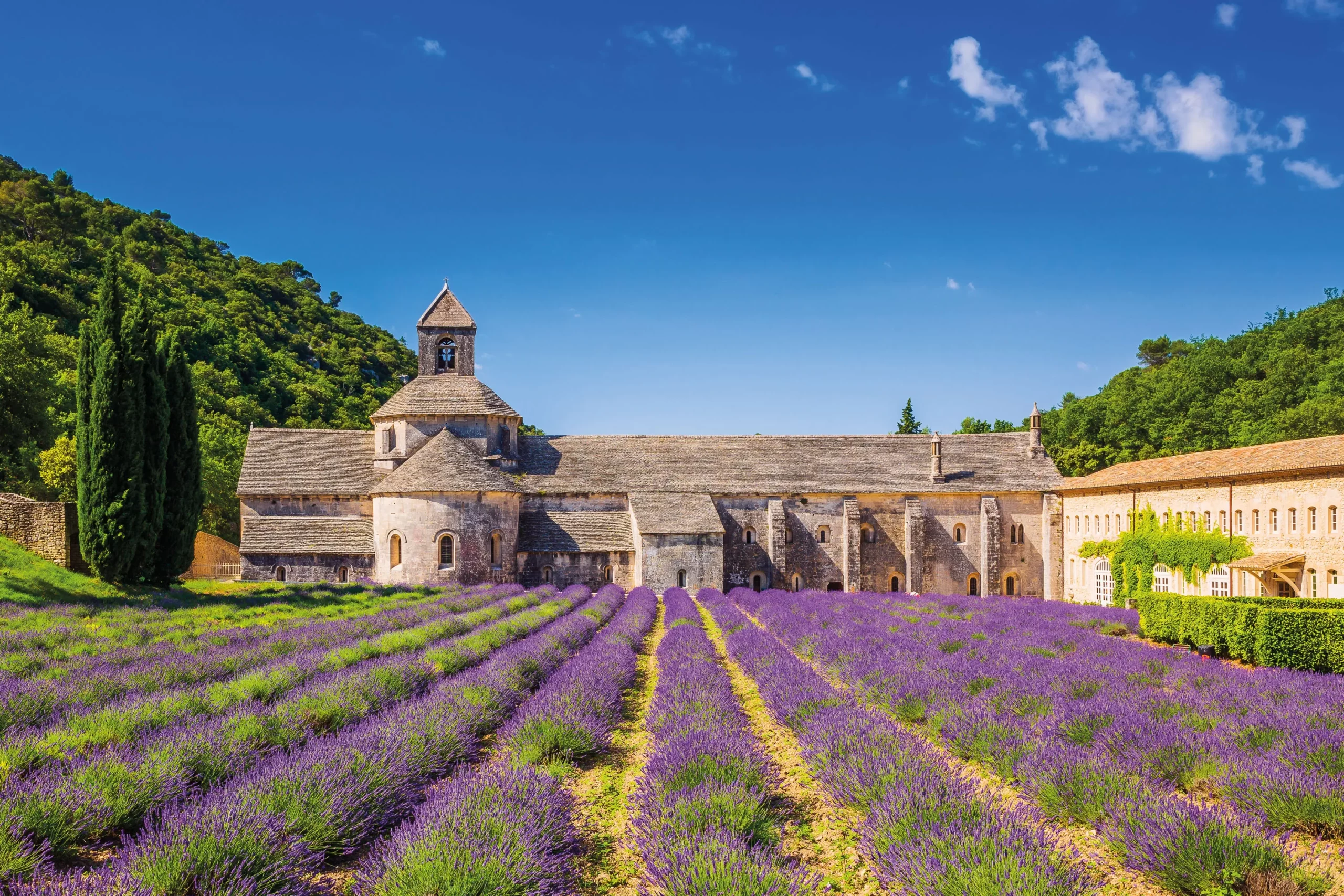 Petit déjeuner. Départ pour Gordes. Visite guidée de l’abbaye de Sénanque : monastère cistercien depuis 1148. Découverte de l’église abbatiale, le cloître, la salle capitulaire, le chauffoir ainsi que l’ancien dortoir. Déjeuner. Continuation pour Roussillon. Découverte guidée du conservatoire des ocres :  Ancienne usine située dans une ancienne carrière. Vous découvrirez la géologie et l’histoire de l’ocre, les modes d’extraction et l’importance de l’ocre dans l’architecture et l’environnement. Puis, temps libre de Roussillon, petit village perché classé parmi les plus beaux villages de France, il se pare de multiples couleurs chaleureuses. Dîner, nuit.